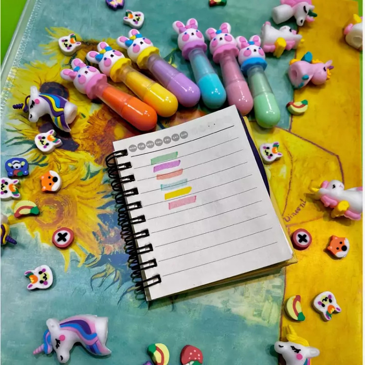 “✨با این ماژیک ها و هایلایتر های فانتزی ، رنگ و رویی تازه به دفتر و نقاشیهایتان ببخشید!✨ طراحی جذاب، رنگهای شاد و کیفیت بالا و رنگ های پاستیلیپچ، مناسب برای کودکان و حتی بزرگترهایی که عاشق نوشتافزار بامزهاند! یک انتخاب عالی برای هدیه دادن یا تکمیل لوازم التحریرتون! همین حالا سفارش دهید و زیبایی را به نوشتههایتان اضافه کنید. ✨🎨🐰”