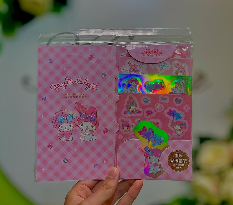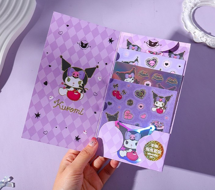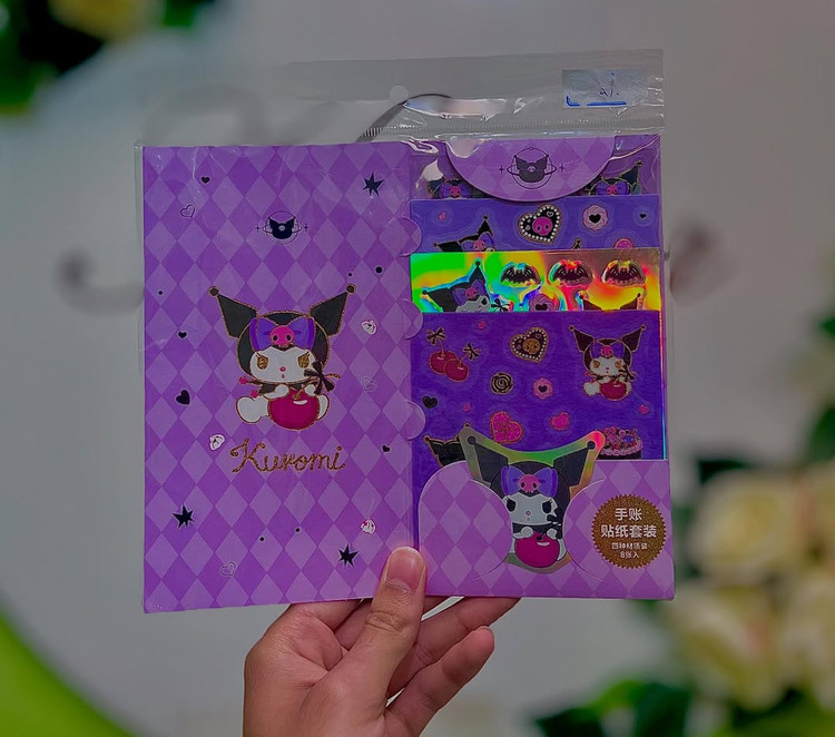 عاشق استیکرای خاص و کیوتی؟ با این پک استیکر براق Kuromi دنیای دفتر، گوشی، لپتاپ و برنامهریزیتو پر از حس فانتزی و شادی کن! شامل: استیکرهای براق با طرحهای متنوع و خاص